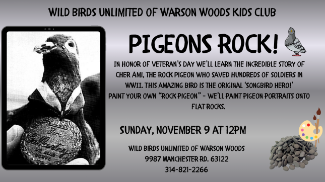 Want to share the joy of birds and nature with your own little fledgling? Join us at The Warson Woods Warblers kids club! Stop in for a fun activity and learn about the wonderful world of birds and nature that surrounds us!